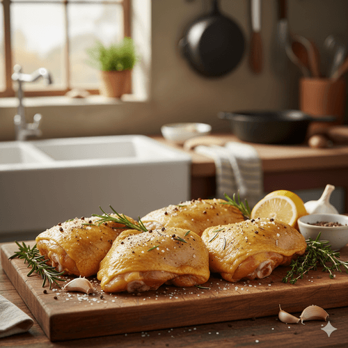 Discover the deep, rich flavor that only comes from true farm-grown chicken. These bone-in, skin-on thighs are the chef's secret to the juiciest, most forgiving meals.SelectQuantityAll options are out of stockComing soon